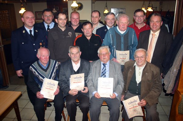 Für langjährige Treue als Mitglied bei der Ensdorfer Freiwilligen Feuerwehr wurden mit Urkunden geehrt: